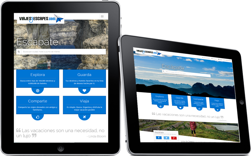Descubre nuevos destinos, revive experiencias y disfruta de un viaje inolvidable. En Viajes y Escapes nos comprometemos a ofrecer las mejores tarifas y descuentos en hoteles en todo el mundo, disfruta de mas de 150 mil opciones y escapate a una nueva aventura!